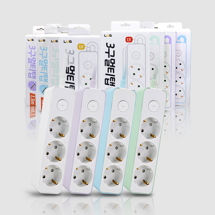 러그박스 3구탭 접지 멀티탭 파스텔 4색 1.5M 3M