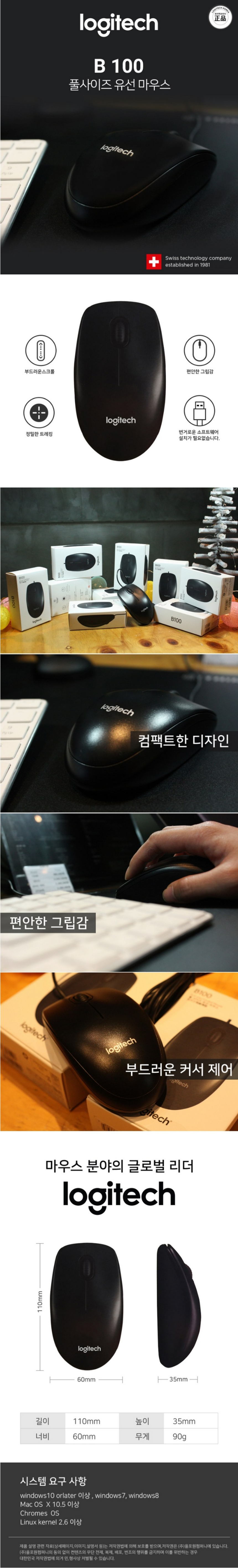 [국내정품] 로지텍 마우스 B100