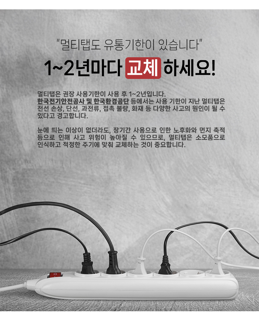 러그박스 6구 개별 멀티탭 납작한 슬림한 플러그 1.5m / 3m / 5m 화이트 멀티콘센트